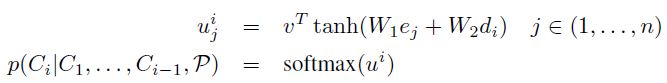 * 어텐션 메커니즘 적용하여 제안한 Ptr-Net 식
