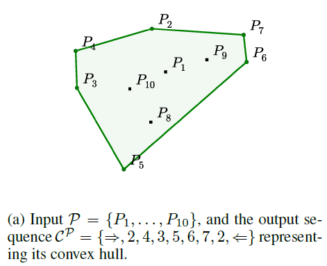 - 즉, P1, P2,..., P10와 같은 연결선 없는 좌표값이 인코더의 input이고, 디코더의 output이 P2, P4, P3,... 와 같이 convex hull을 생성할 수 있는 좌표가 되는 것임